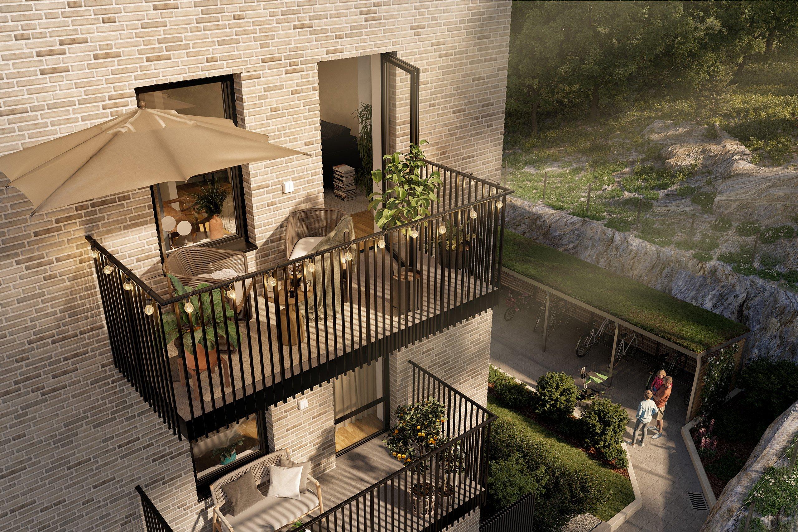 I den första etappen erbjuds 28 yteffektiva lägenheter om 1 – 3 rum och kök varav några kan bli fyror. Merparten av bostäderna får balkong eller uteplats. Det småskaliga kvarteret får en ombonad innergård med plats för umgänge och garage under huset och gården.