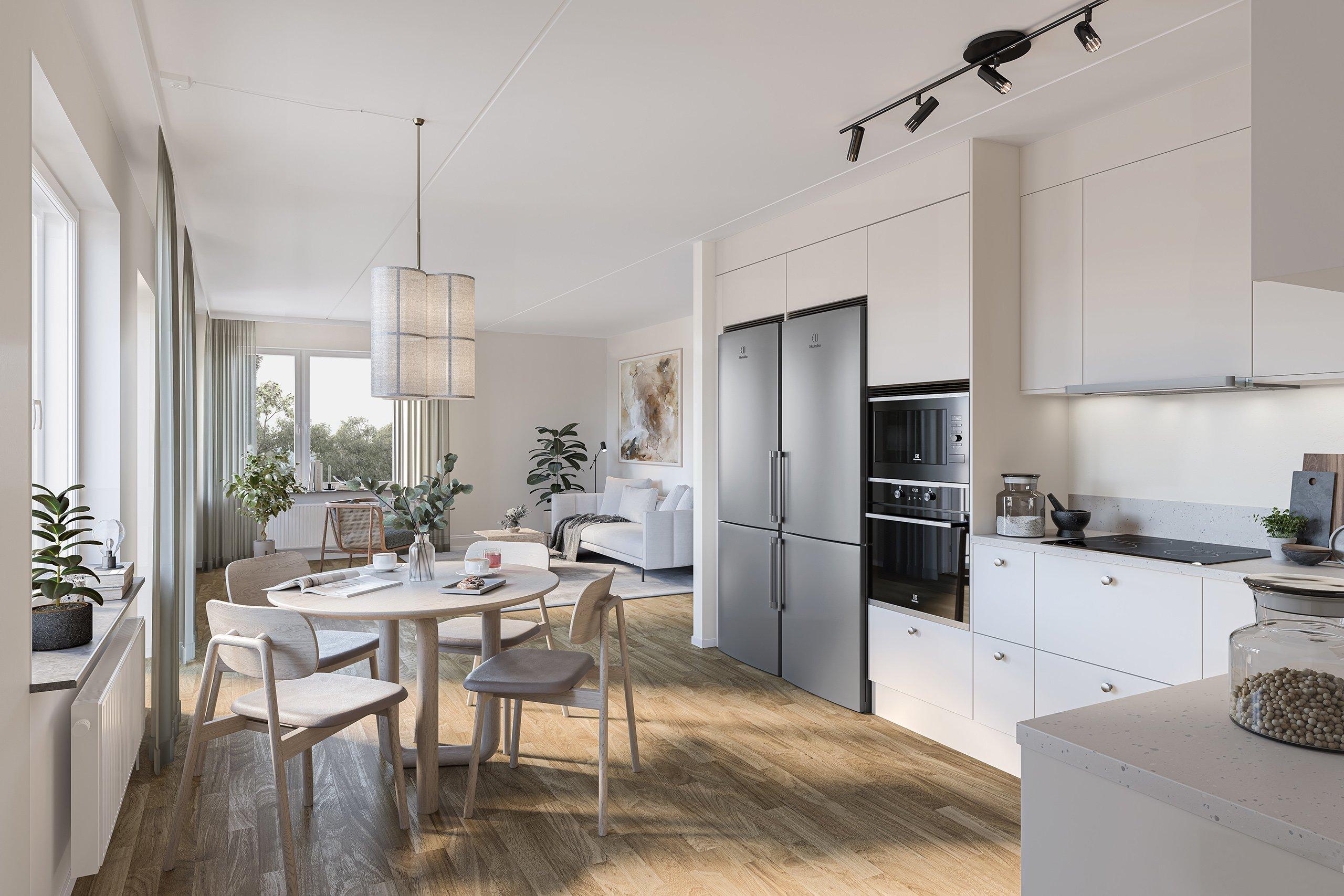 I lummiga och grönskande kvarter bland radhus och villor hittar du småskaliga Backtimjan. Här finner man 1 – 5 rum och kök i en hästskoformad byggnad runt en trivsam gård. Flera av bostäderna är flexibla; balkong eller uteplats är givet, och man kan också njuta av kvällssolen tillsammans med vänner på den gemensamma innergården.