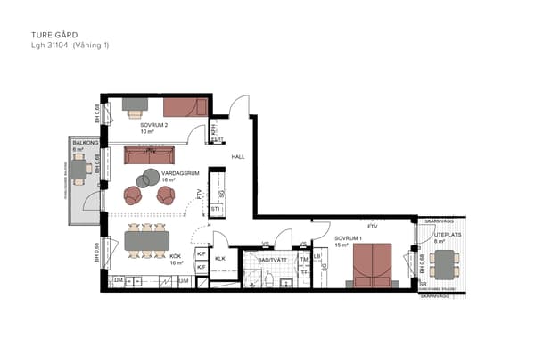 Hitta ditt nya boende i Ture Gård. Här byggs nya moderna och stilrena bostadsrätter där nästan alla har balkong eller uteplats. Här bor du i kvarter med stor gemensam innergård med många grönskande planteringar, utemöbler, boulebana och växthus för den odlingsintresserade.